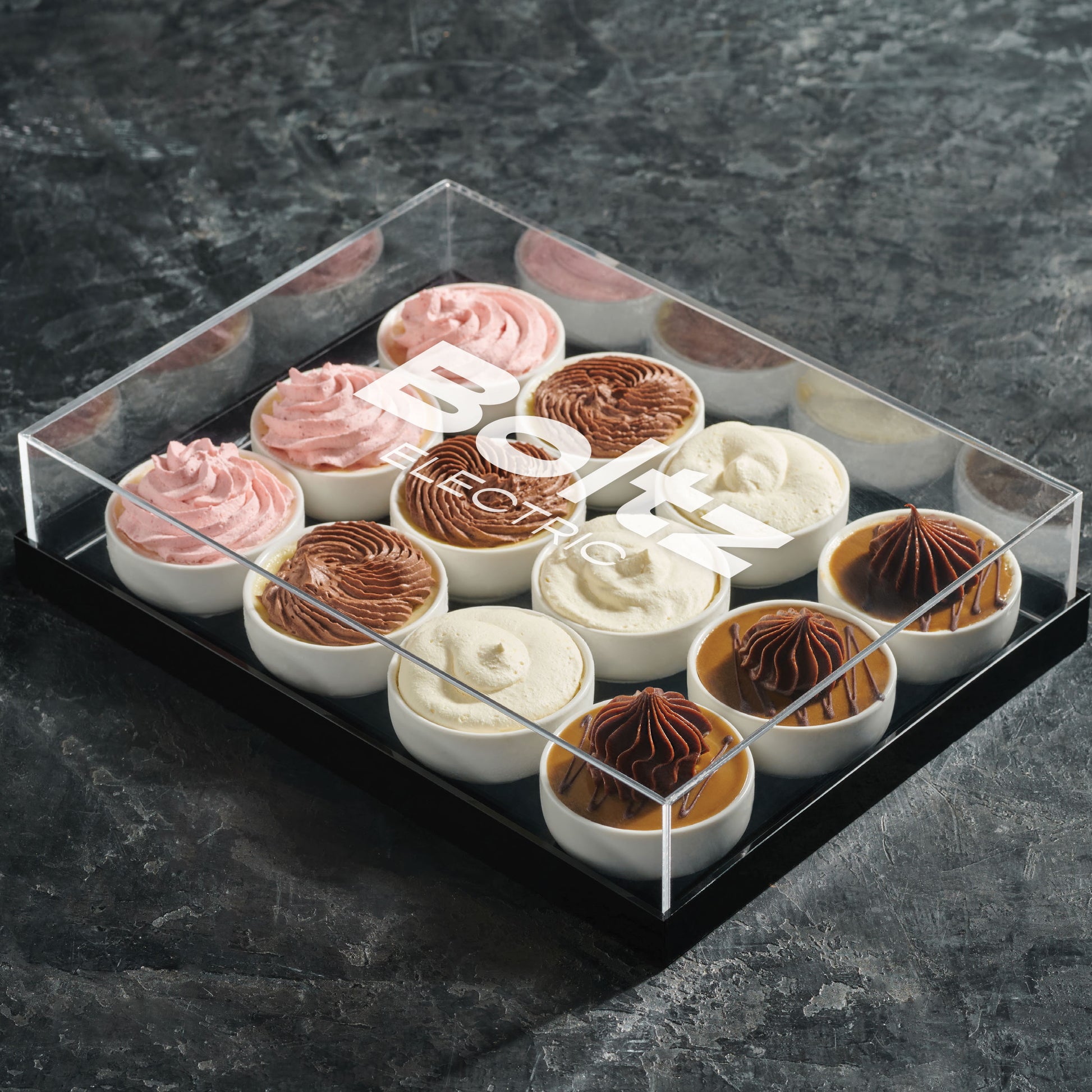 Luxury acrylic gift box with Assorted cheesecake ramekins